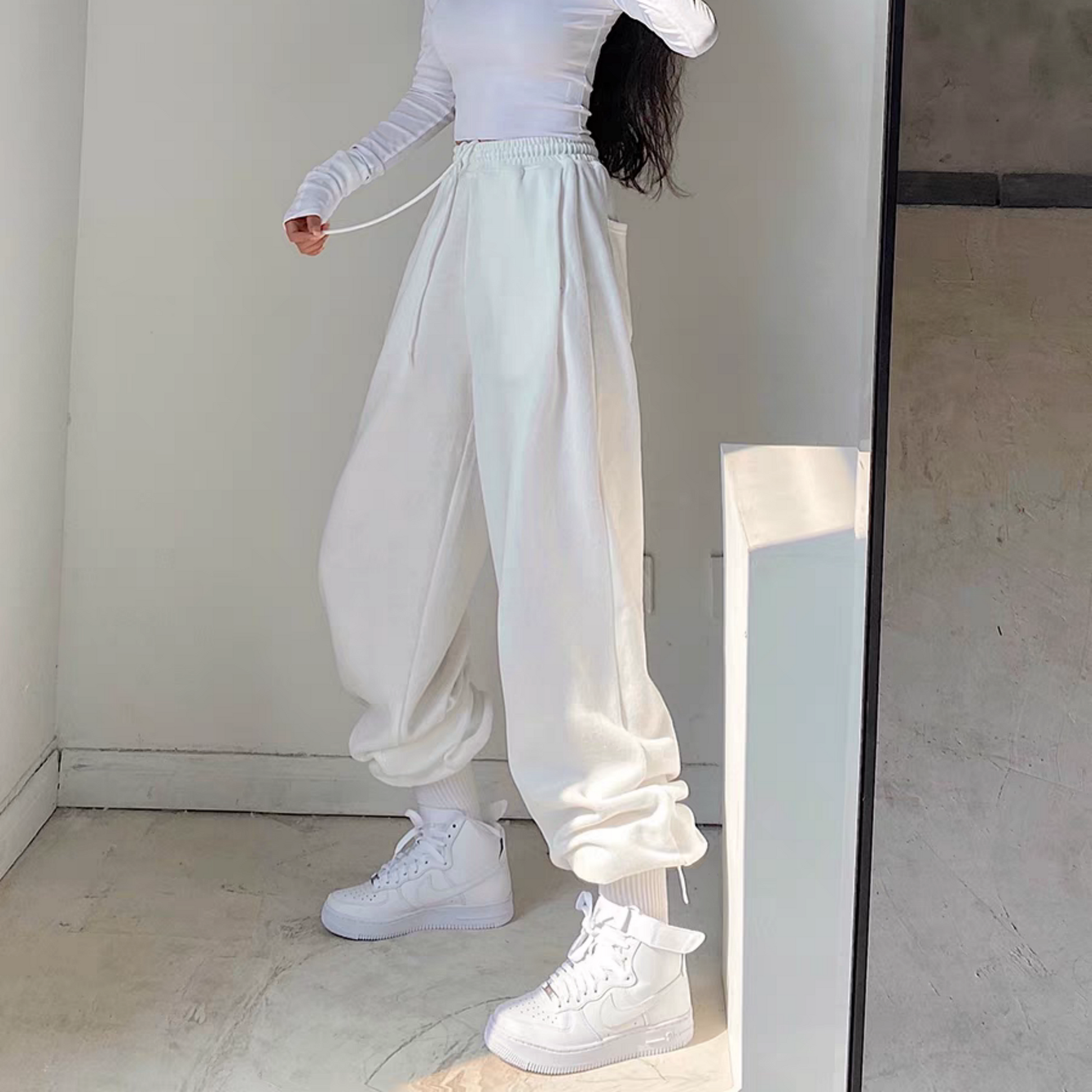 A classic sweatpants that is versatile and comfortable to wear. The fabric is cool and has a fine texture, with clever details like pleats that make the pants more three-dimensional and comfortable to wear naturally.