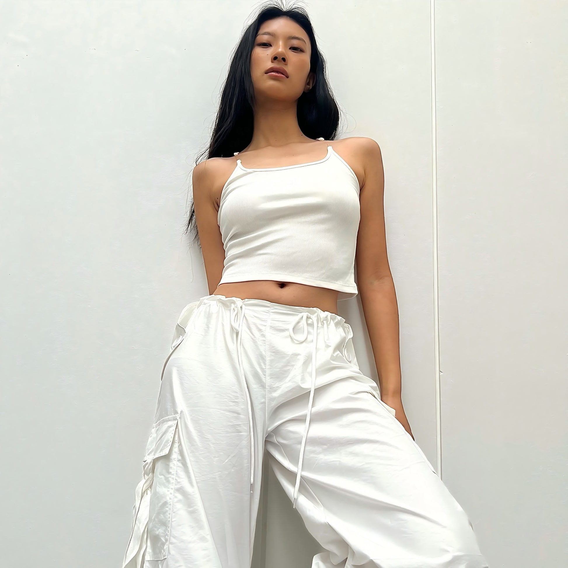 Product Introduction:This is a popular 'strappy illusion' camisole version, with a soft and three-dimensional feel to the fabric. The details at the strap area use skin-friendly materials, ensuring comfort and a unique visual effect.