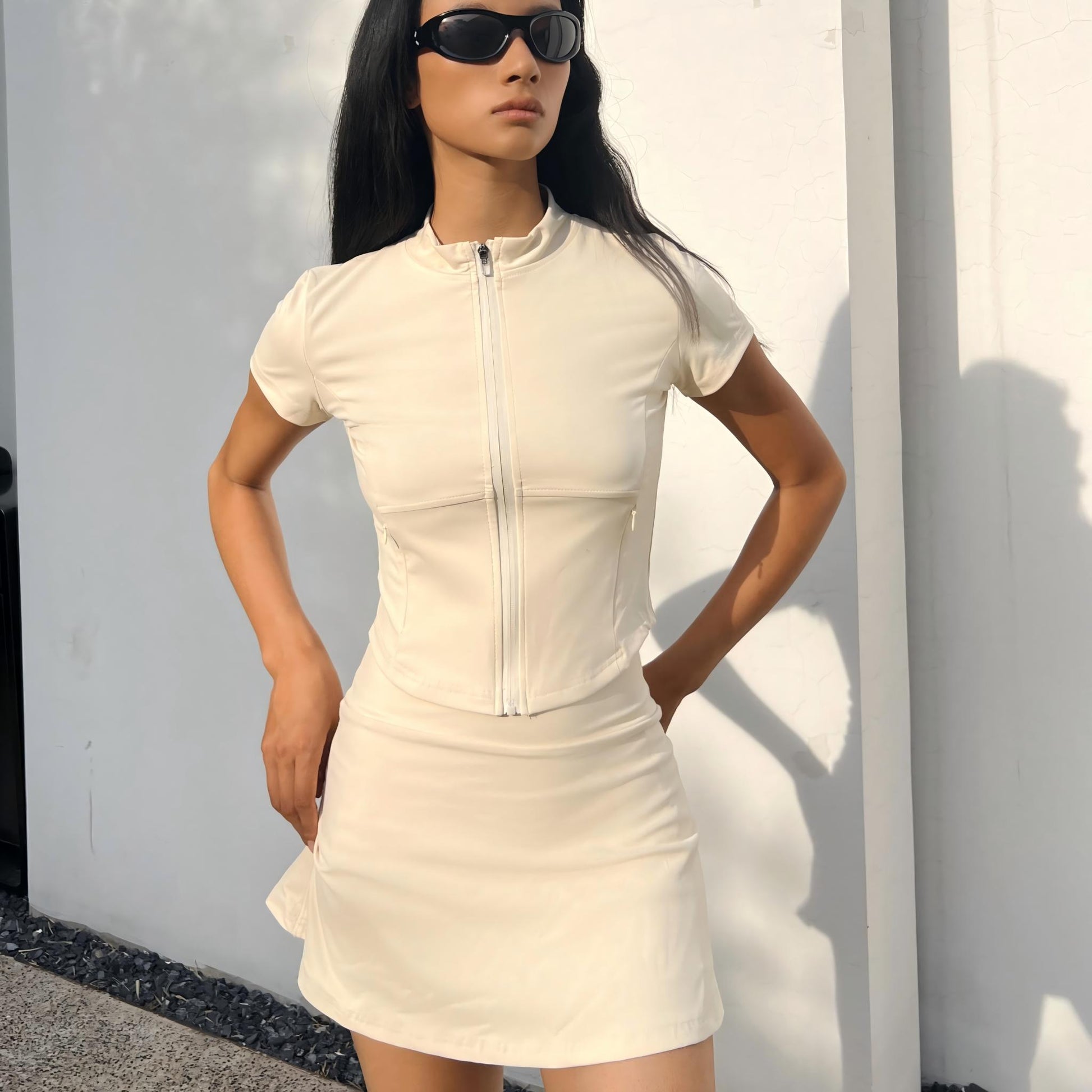 This lightweight sports skirt is made of quick-drying fabric and comes with a short skirt lining. The fluttering hem highlights its free vitality. With an exquisite cut, it is versatile for daily use and suitable for various occasions.