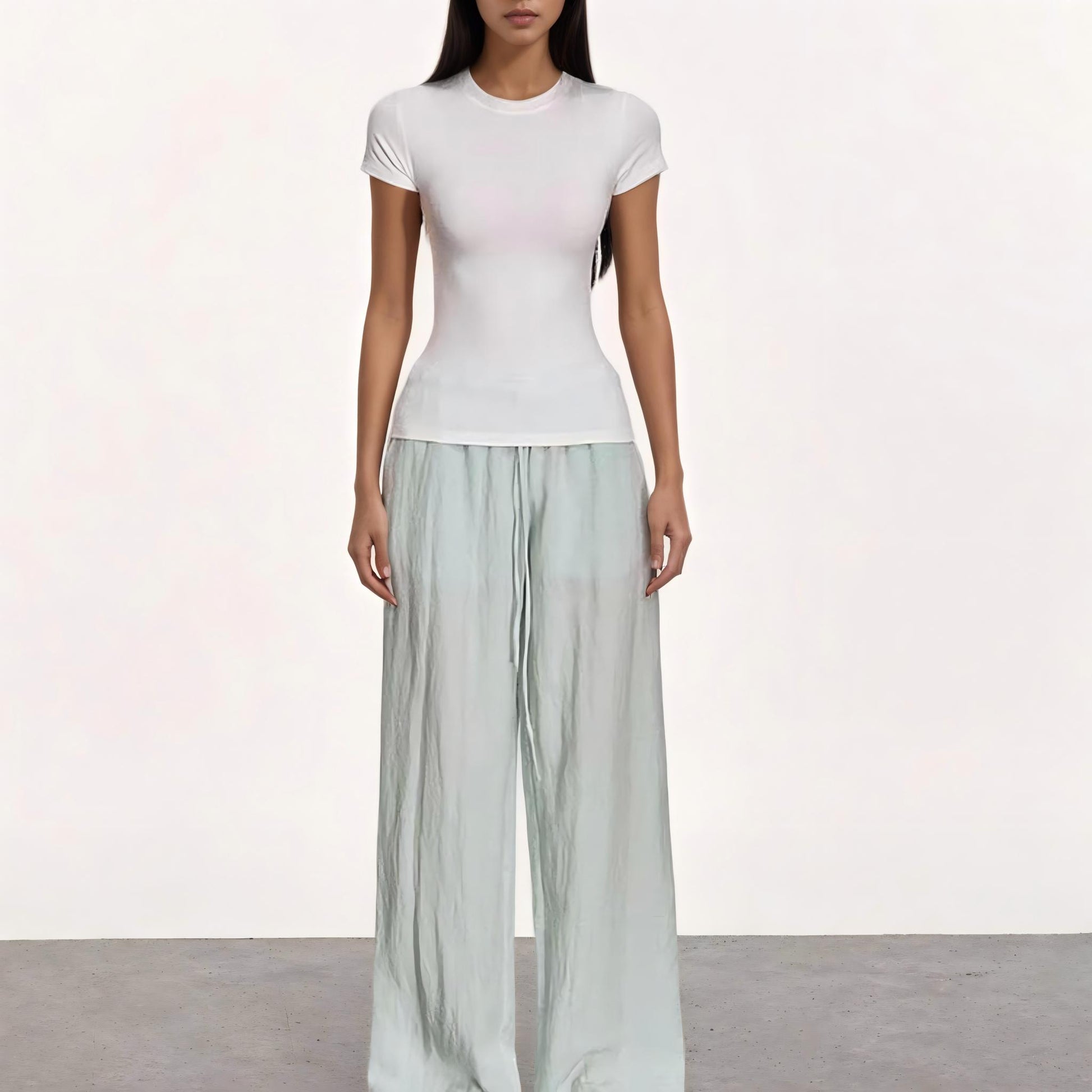 This solid-color slim-fit T-shirt is made of a cotton fabric with a light jacquard texture. It feels like "cotton candy worn on the body", looking stylish and wrinkle-free. It can exude vitality both inside and out.